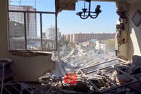 Rescue workers clear rubble after strikes hit buildings in western Tehran.