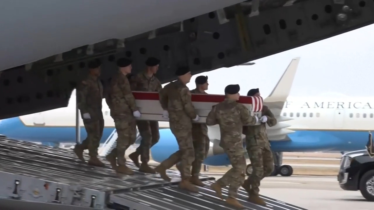 Trump attends dignified transfer of soldiers killed in war in the Middle East.