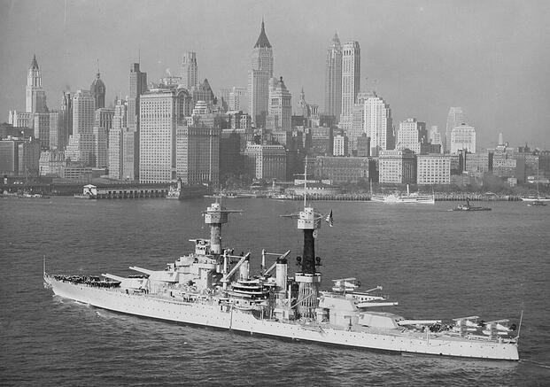 The USS Colorado was a 32,600-ton battleship built in Camden, New Jersey, and commissioned in 1923. Before World War II, the ship served with the Navy’s Battle Fleet, conducting training and exercise drills. The battleship even helped in the search for famed pilot Amelia Earhart in 1937. During the war, the Colorado served in the South Pacific, guarding against Japanese attacks. The mighty ship survived two Kamikaze suicide bombers in 1944 and was decommissioned in 1947.