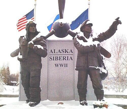 In downtown Fairbanks, sculptor R.T. Wallen created the Alaska-Siberia Lend-Lease Memorial, which was presented to Alaska in 2006. The monument shows an American Army Air Force pilot and a Soviet pilot standing beside a Bell P-39 Airacobra propeller. Russian and American wreaths are usually placed at its base.