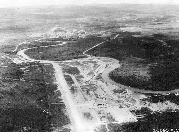 The ALSIB route for military aircraft started at Great Falls, Montana, where soldiers painted Soviet red star markings on the planes. Women Airforce Service Pilots and male Army Air Corps pilots from the 7th Ferrying Group flew fighters and bombers from manufacturing plants to Great Falls. From there, male ferry pilots continued north through Canadian airstrips to Ladd Army Airfield near Fairbanks, Alaska. Soviet pilots then took over for the 3,980-mile flight to Krasnoyarsk.
