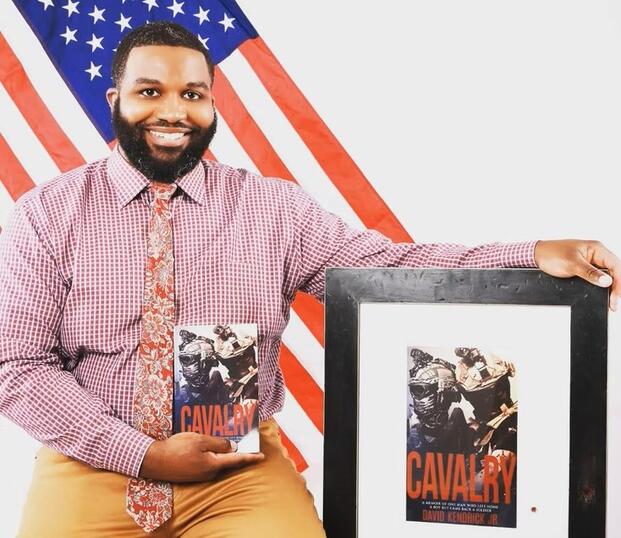 Iraq War veteran David Kendrick Jr. with his memoir. (Lion Speaking Agency)