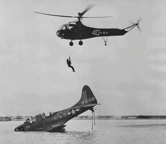 The Sikorsky R-4 helicopters assigned to the ships were experimental. Under ideal conditions, the aircraft could carry only 195 pounds beyond pilot and fuel - enough for small components like propeller hubs but not much else. A 1943 Navy report had already concluded the R-4 wasn't suitable for shipboard operations.