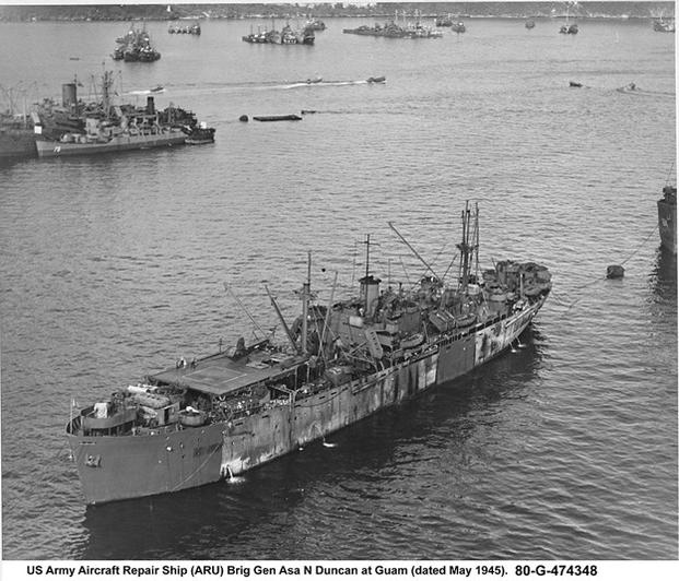 Gen. Henry "Hap" Arnold, commanding the Army Air Forces, authorized a classified program to convert six Liberty ships into floating maintenance depots, each carrying 344 personnel. Eighteen smaller auxiliary vessels with 48-person crews would handle fighter aircraft maintenance. The ships would be stocked with machine shops, specialized tools, and massive inventories of replacement parts for B-29 bombers and P-51 Mustangs.