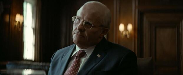 Christian Bale as Dick Cheney in Vice (2018), image made available by Annapurna Pictures, used under fair use.