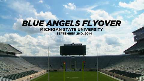 A couple of angles showing the U.S. Navy's Blue Angels fly over Michigan State University on September 2nd, 2014.