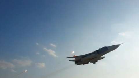 Here's the latest footage coming from Russia showing Su-24s flying a training mission following a highway at low level.