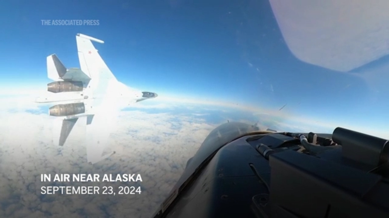 Military officials have released new video of a startling interaction between a Russian jet flying near Alaska and a U.S