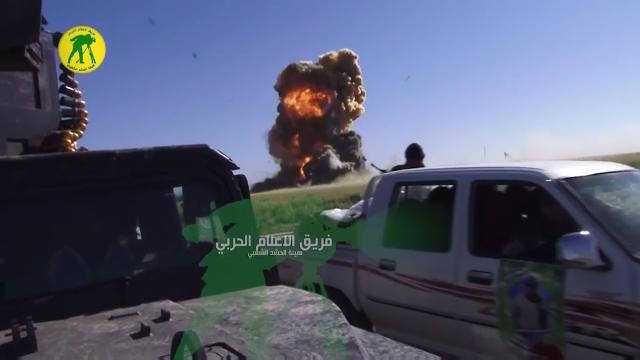 Iraqi Popular Mobilization forces blow up an ISIS VBIED in the Samarra West Desert.