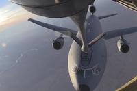 A U.S. Air Force KC-135 refuels a KC-10 in mid air over Southwest Asia.