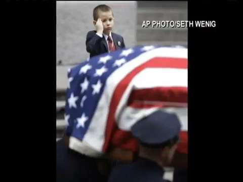 NEW YORK (AP) — The 4-year-old son of a fallen U.S. soldier saluted his father's flag-draped casket Wednesday as it