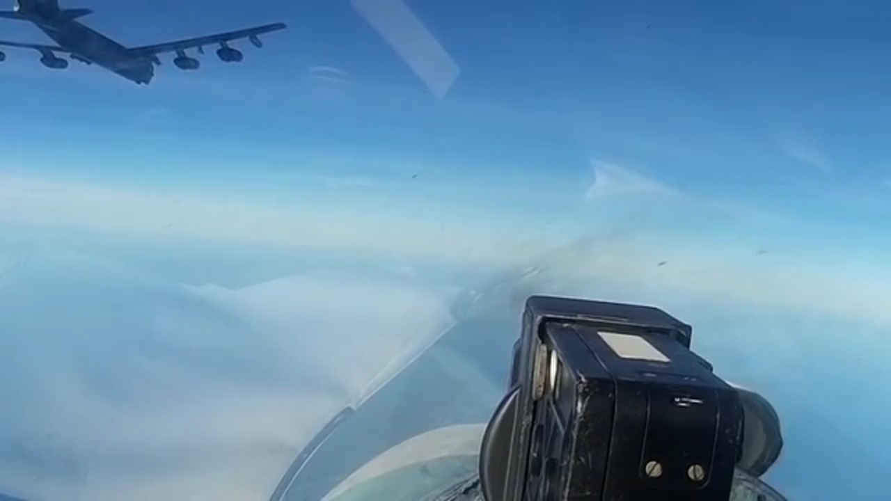 Footage released by the Russian Ministry of Defense on Saturday allegedly shows Russian Air Defense Forces Su-27 fighter jets escorting