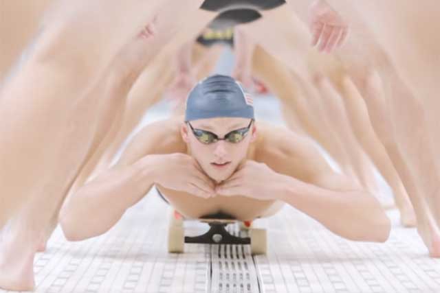 The Navy Men's Swimming and Diving team have a bit of fun after practice.