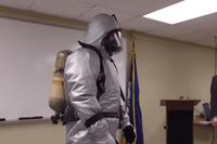 Sailors from the Los Angeles class-attack submarine USS Toledo (SSN 769) try out a prototype submarine steam suit ensemble during