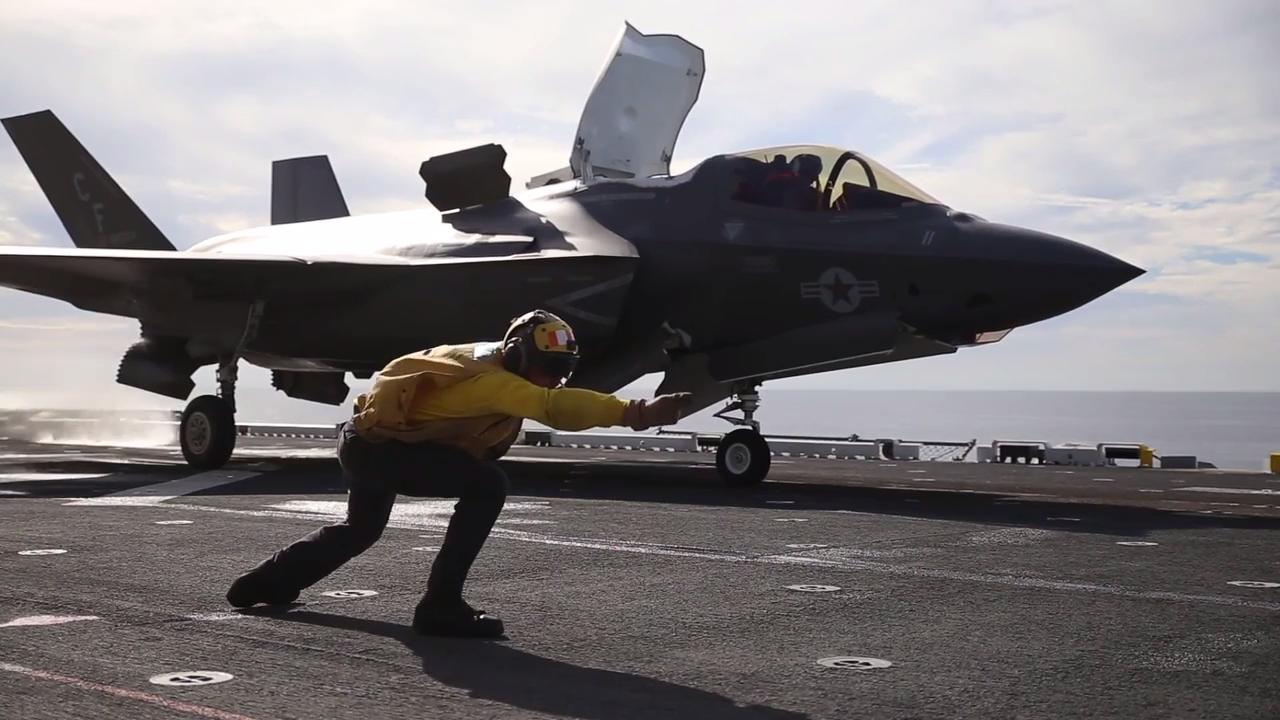 Twelve F-35B Lightning II's embarked on USS America (LHA 6) November 19, 2016. The demonstration is the first shipboard Marine