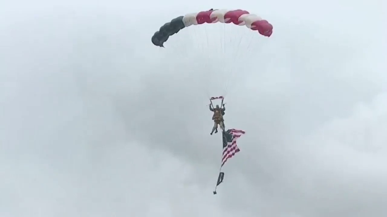 What a scary moment for that paratrooper!