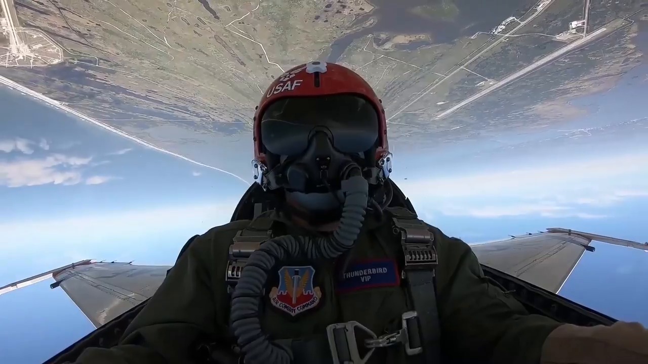 Step into the cockpit of Air Force Thunderbird #5, Maj. Matt Kimmel, Lead Solo, during the AF flyover at the