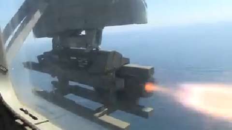 A "Hellfire" air-ground-missile 114K launches from an MH-60 Seahawk helicopter assigned to Helicopter Combat Squadron 28 and Helicopter Combat Squadron