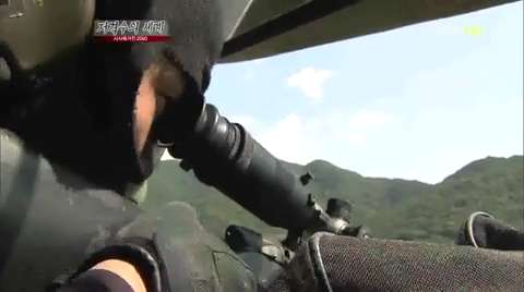 A South Korean sniper demonstrates intimidating shooting skills by taking out distant targets from a helicopter in moves like those