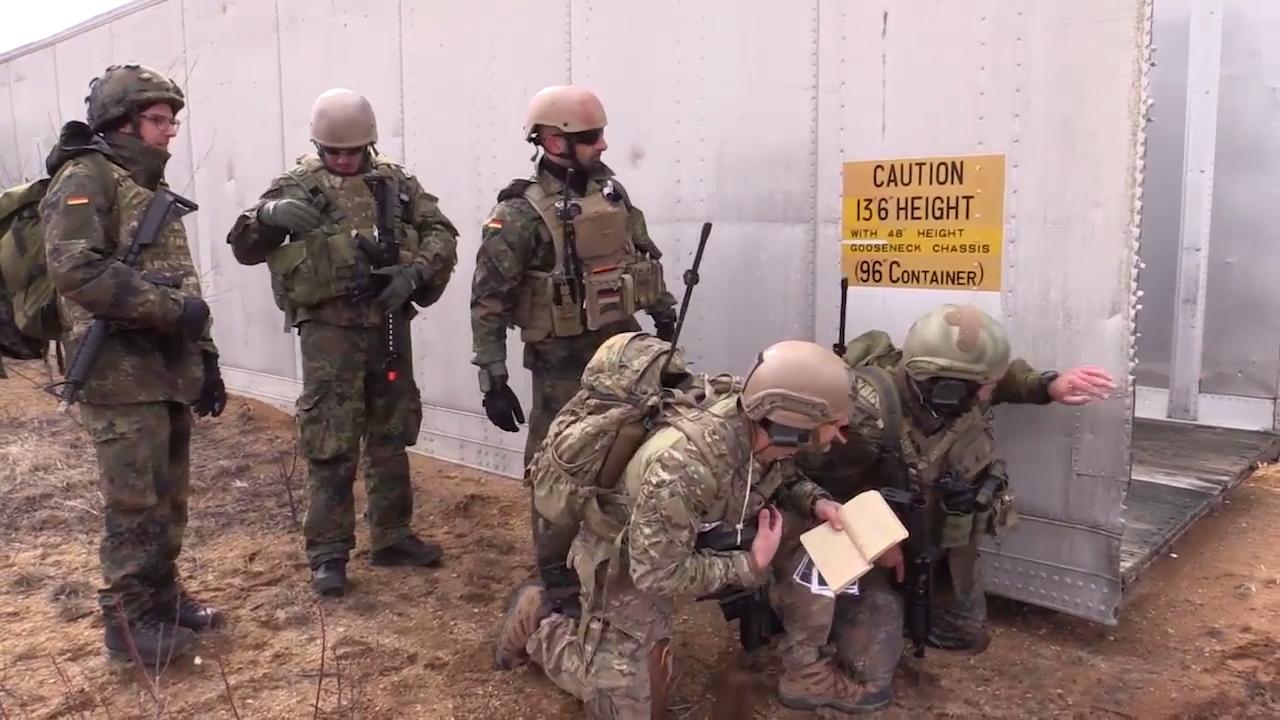 U.S. Tactical Air Control Party Airmen from the 19th Air Support Operations Squadron at Fort Campbell, KY work alongside German