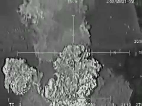 B-roll of aerial gun tape vehicle engagement. Scenes include Apache helicopter identifying and engaging vehicles with hellfire missiles and 30mm
