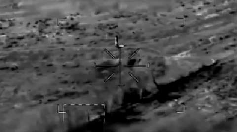 FLIR footage showing US Apache helicopters engage snipers with 30 mm guns as they're taking mortar fire from the enemy.