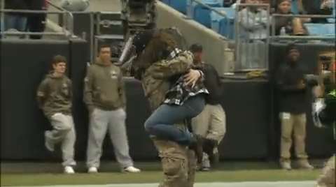 There was a heartwarming surprise at a recent Panthers game. Between the first and second quarter, Spec. Eric Roth, who