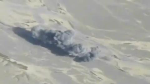 An IED explodes in a failed attack and flips a US Army MRAP over in Afghanistan.