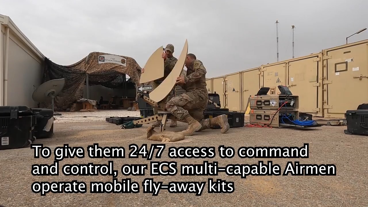 332nd Expeditionary Communications Squadron airmen put together a flyaway kit Oct. 18, 2021, at an undisclosed location in Southwest Asia.