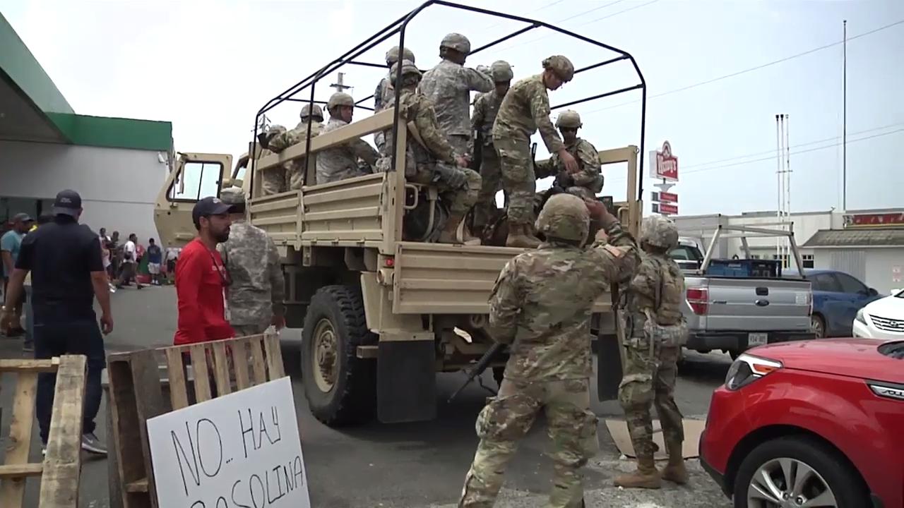 Citizen-Soldiers and Airmen support the Puerto Rico Police Department by providing security at gas stations around the Island after being