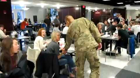 "After being gone for months performing route clearance missions in Afghanistan, I came home to surprise my Fiancée', Katie, while