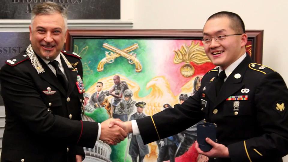 Spc. Leung helps to build on a strong established US Army partnership with the Italian Army through painting. (U.S. Army)
