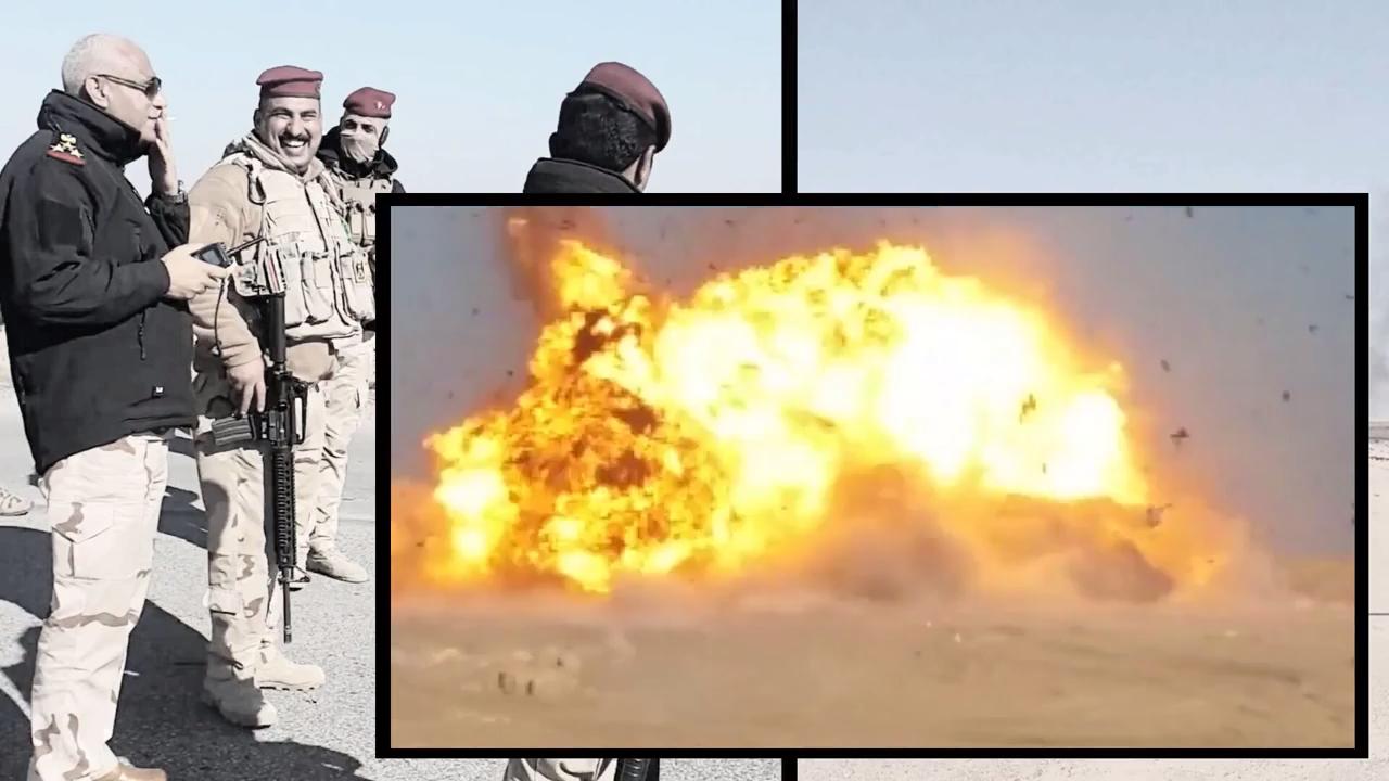 An ISIS truck bomb is detected at a checkpoint near Ramadi, Al Anbar. The vehicle is destroyed by an Iraqi