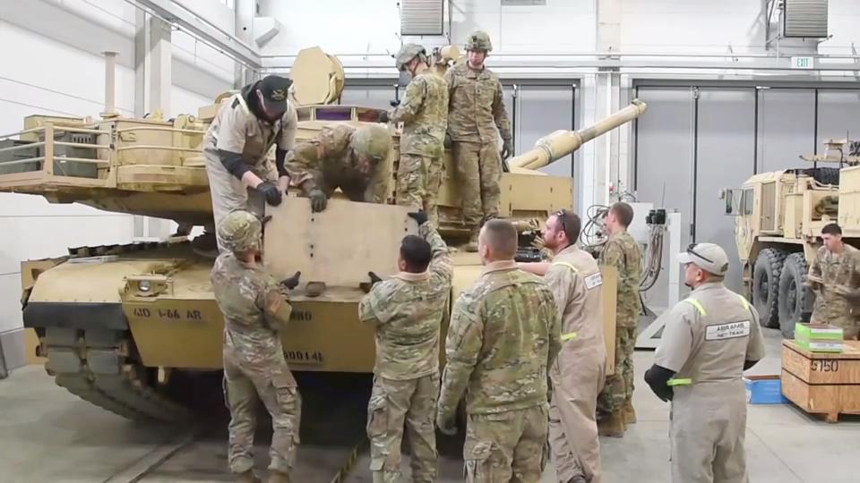 U.S. Soldiers, assigned to the 1st Battalion, 66th Armor Regiment, 3rd Armor Brigade Combat Team, 4th Infantry Division, install Reactive