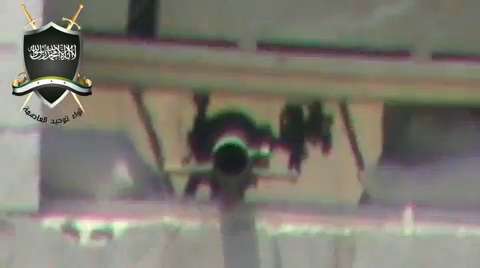 Syrian rebels engage and destroy a B-10 rocket using an RPG.