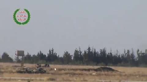 Syrian rebels engage two SAA T-55s with Norinco HJ 8 ATGMs. The second shot is much clearer at the 29