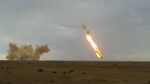 Powerful shockwave at the 1:00 mark. A Russian rocket (Proton-M) carrying three navigation satellites careened off its flight path, burst