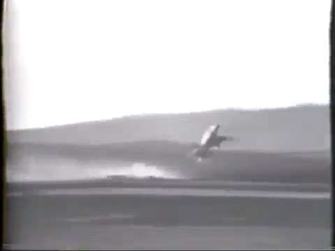 A U.S. Air Force F-100 jet fighter aircraft, piloted by Lieutenant Barty R. Brooks, of the 1708th Ferrying Wing, trying