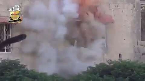 Syrian rebels target Assad shabiha holed up in a building in Barzeh, Damascus. 06/19/2013.