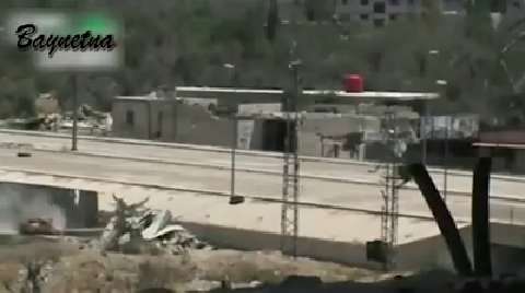 SAA tank takes a direct hit from the Free Syrian Army in Damascus. Syria 2013