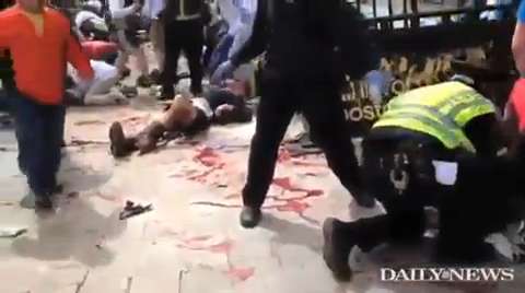 Runner captures Boston Marathon explosion. Two bombs exploded near the finish line at the Boston Marathon killing three and injuring