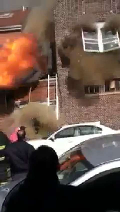 A backdraft during a residential fire causes a huge explosion. Looks like that firefighter got hit pretty hard. Hope everyone