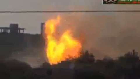Syrian rebels hit a Syrian Army *tank with a large IED around the 16 second mark. Some ten seconds later