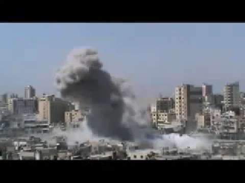 Syrian jet drops a bomb on some buildings in Homs. 8-11-12.
