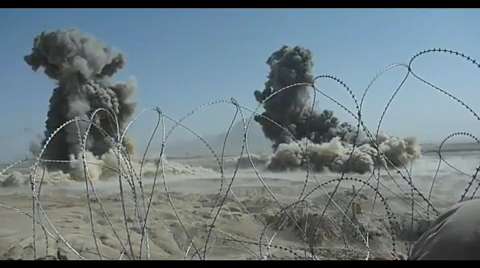 EOD Controled Det, COP Kherwar, Afghanistan. Controlled Detonation of unexploded rockets and grenade that hit the COP in the last