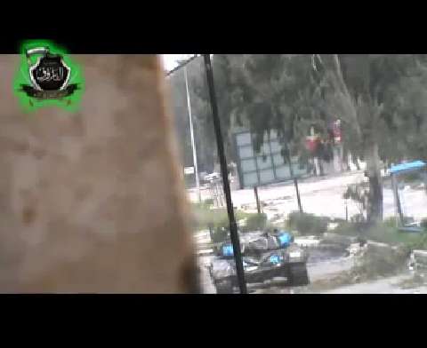 Attack occurs shortly after the 1 minute mark. The Free Syrian Army (Syrian rebels) attack a Syrian Army T-72 tank