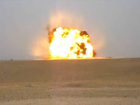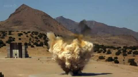 Super slow motion explosion of one ton of high explosive designed to create a seismic wave to examine subterranean rock