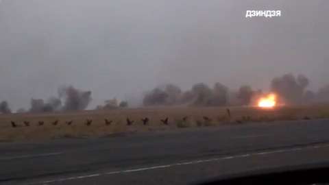 09/15/2014 - Security cameras capture the violent shelling of Donetsk, Ukraine. The cease-fire in eastern Ukraine is was tested on