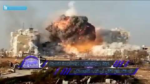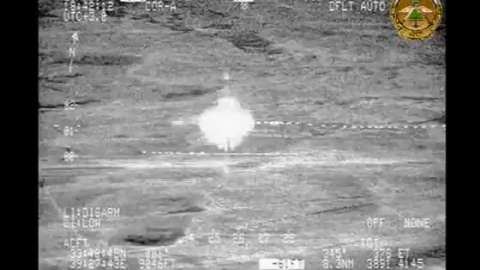 Video footage captures the moment a shell lands on Hezbollah fighters during the Yabrud Battle in Syria.