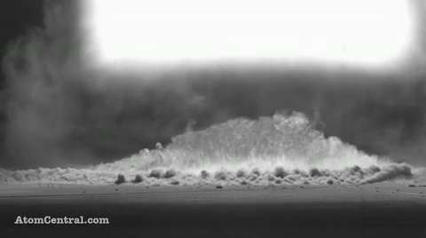 These clips are from shot Grable, the Atomic Cannon test in 1953 showing the initial burst and shockwave. Identified also